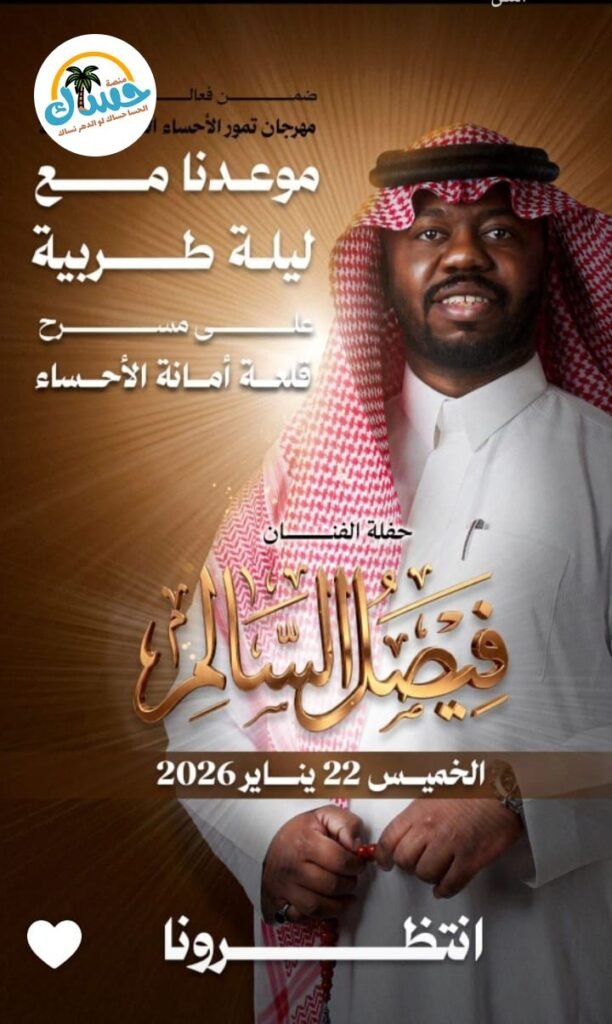 - المناسبة: ليلة طربية ضمن فعاليات مهرجان تمور الأحساء المصنعة 2026