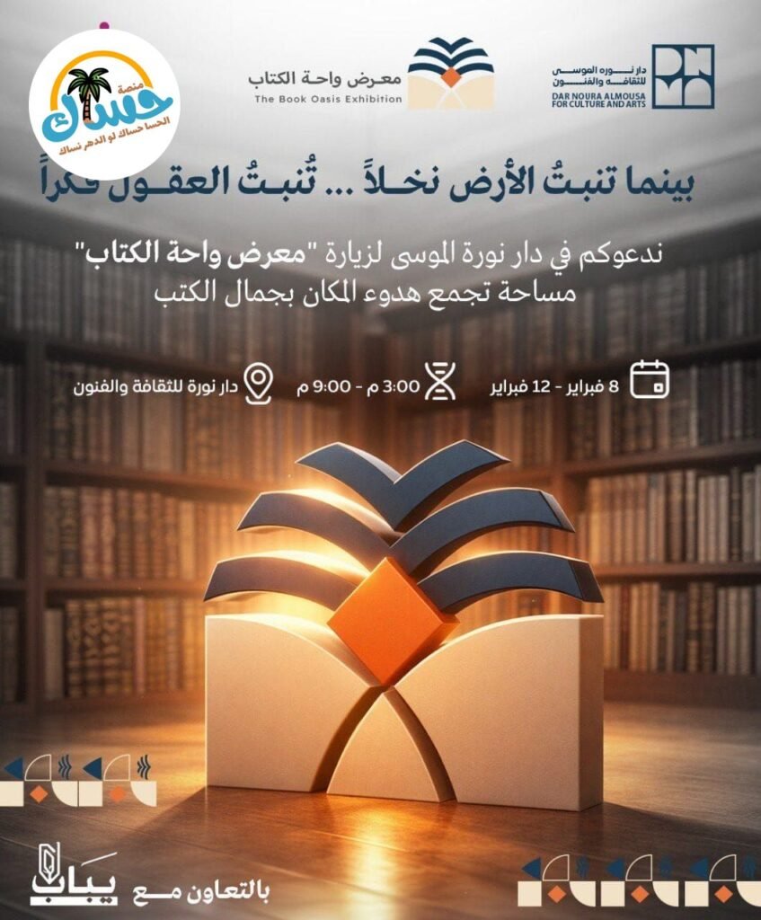 هو حدث ثقافي يجمع بين هدوء المكان وجمال الكتب، تستضيفه دار نورة الموسى للثقافة والفنون بالتعاون مع مؤسسة عبد المنعم الراشد الإنسانية.