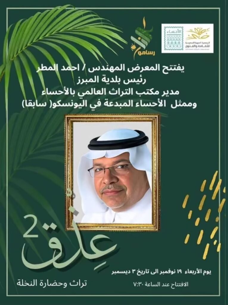 يفتتح المعرض المهندس: احمد المطر رئيس بلدية المبرز ومدير مكتب التراث العالمي بالأحساء.
