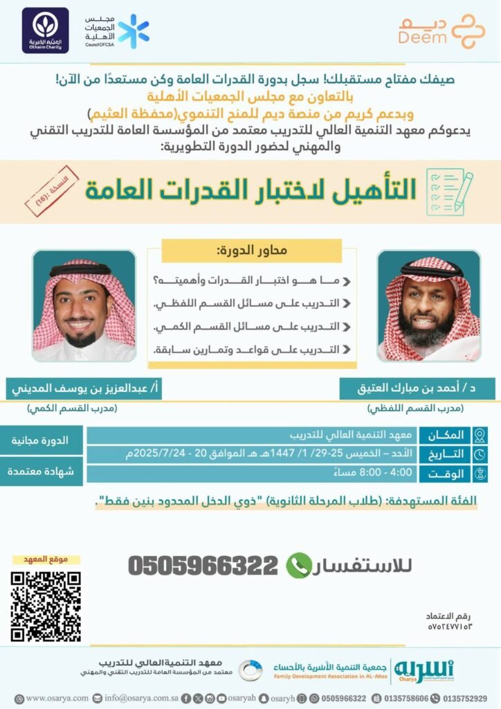 الدورة التطويرية “التأهيل لاختبار القدرات العامة”