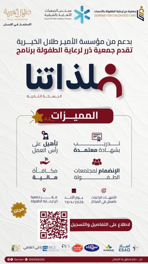 🔥🔥بدعم من مؤسسة الأمير طلال الخيرية النسخة الثانية من برنامج "فلذاتنا" المجاني والمخصص للأمهات الراغبات بالعمل في المراكز.