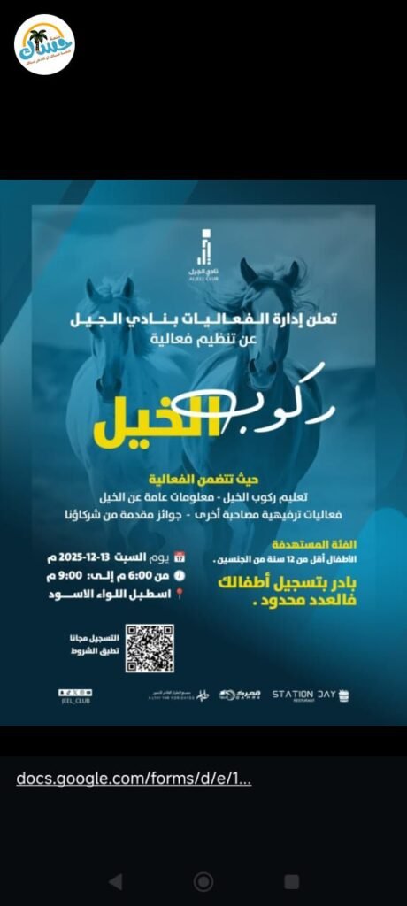 استمتع بتجربة ركوب الخيل في اسطبل اللواء الأسود. المواعيد: السبت من 6 إلى 9 مساءً.
