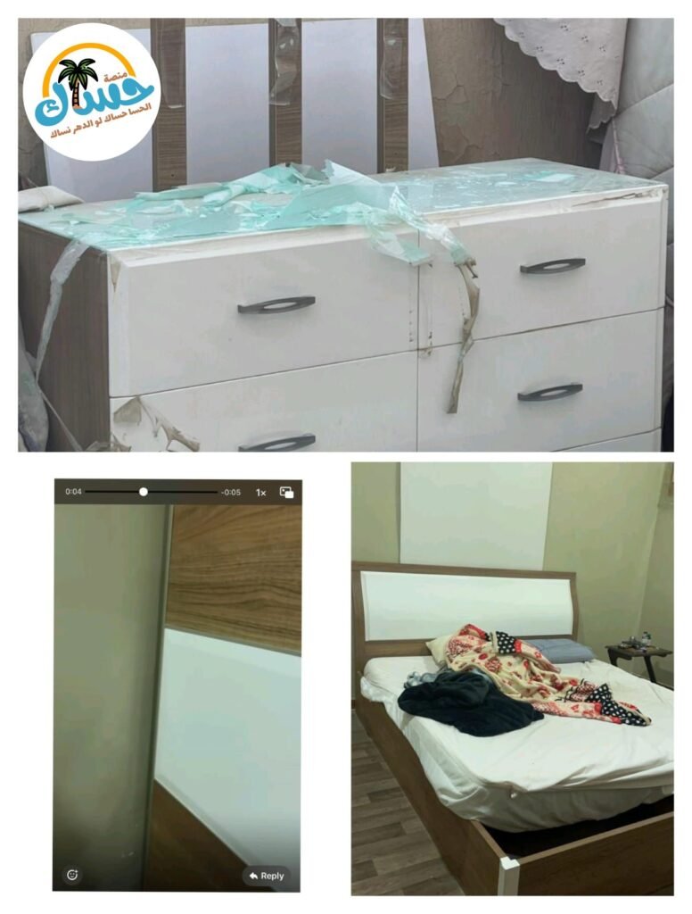 - السرير: يحتاج تصليح لبعض حملات ألواح الخشب، والباقي سليم.