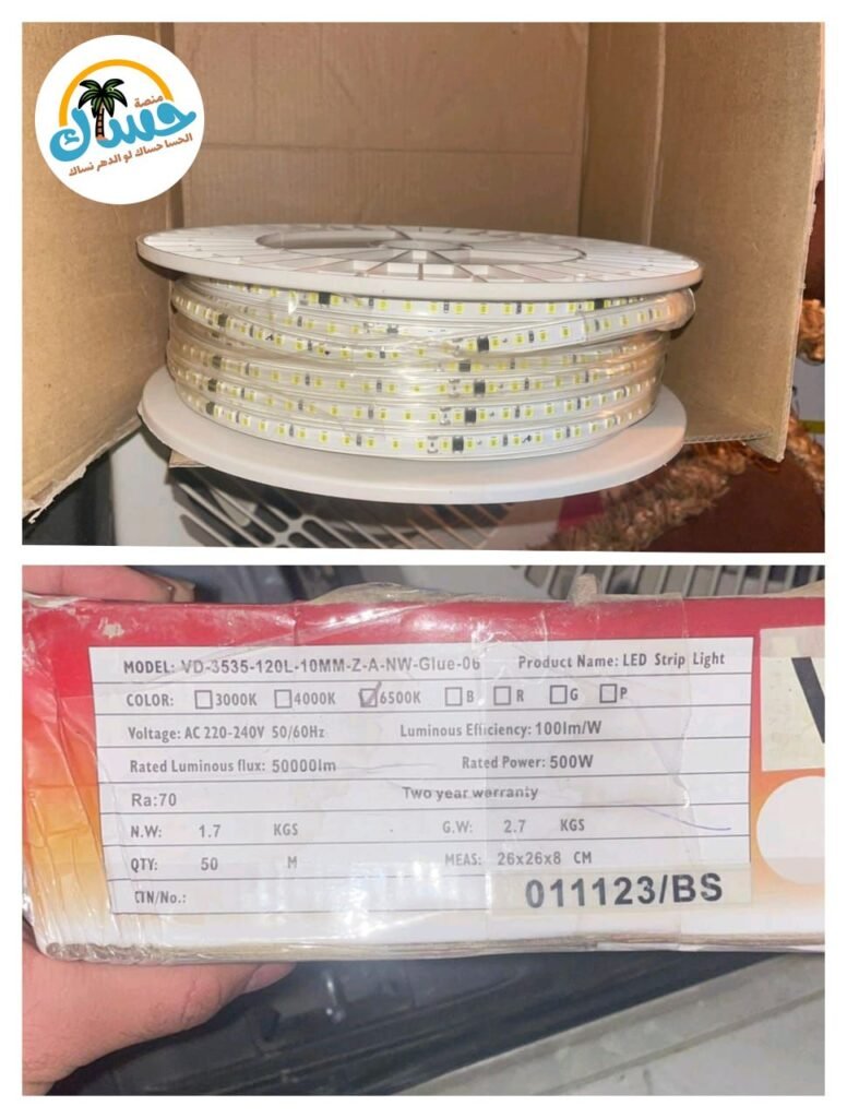 شريط ليد 3 لفات، اللون أبيض. جودة عالية 6500 كلفن وقوة 500 واط. كل لفة بطول 50 متر.