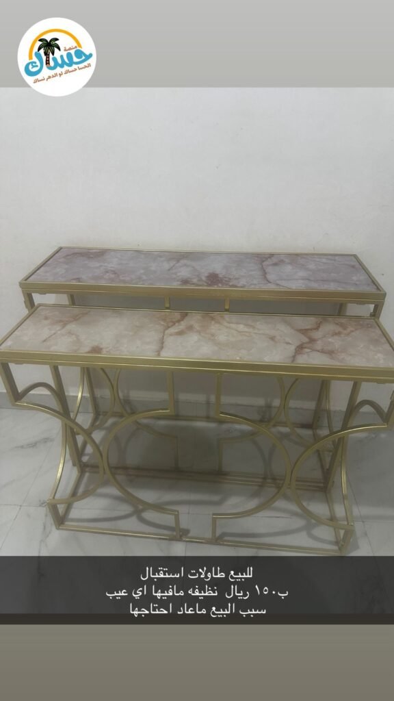 طاولات استقبال نظيفة وجيدة، لا يوجد بها عيوب. السعر: 150 ريال سعودي. سبب البيع: عدم الحاجة إليها حالياً.