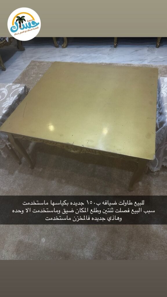 طاولة ضيافة جديدة لم تُستخدم بعد، ولا تزال في أكياسها الأصلية. السعر: 150 ريال.