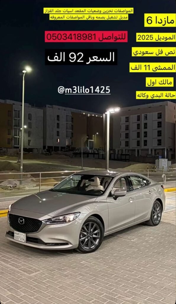 طلب بيع سيارة مازدا 6 – موديل 2025 نص فل