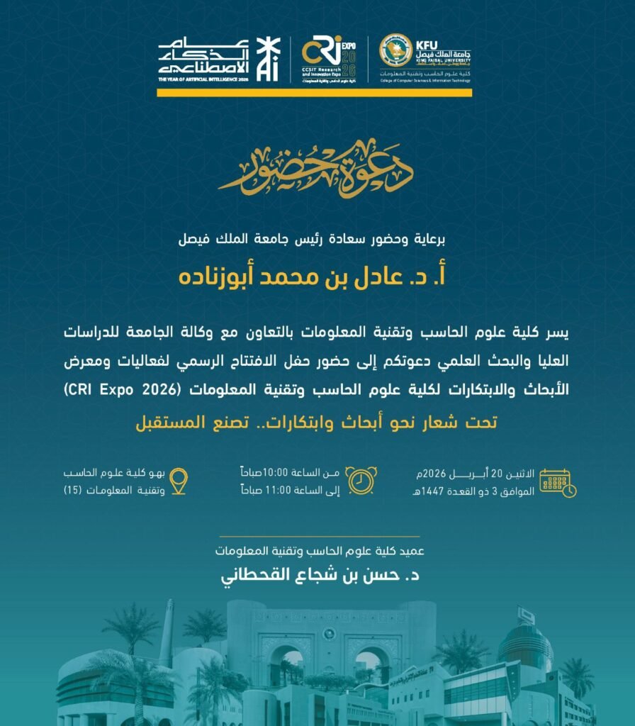 - دعوة لحضور حفل افتتاح فعاليات ومعرض الأبحاث والابتكارات (CRI Expo 2026)