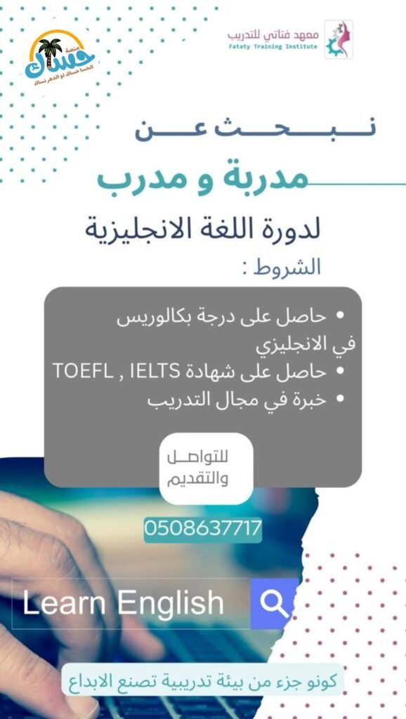 نبحث عن مدرب لغة إنجليزية مؤهل.