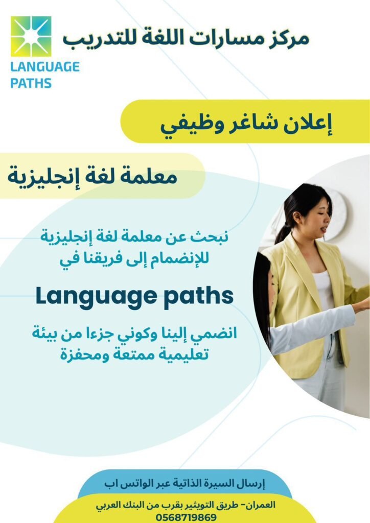 - مطلوب معلمة لغة إنجليزية🏤🏤الموقع: الأحساء، العمران – طريق التويثير بالقرب من البنك العربي.