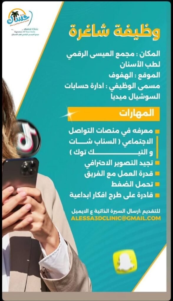 للتقديم: إرسال السيرة الذاتية عبر البريد الإلكتروني ALESSA3DCLINIC@GMAIL.COM.