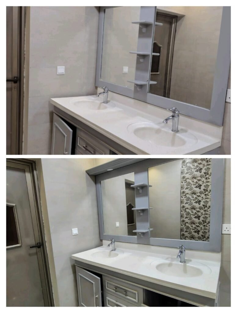 مغسلة رخام صناعي مع خزائن ومرايا للبيع