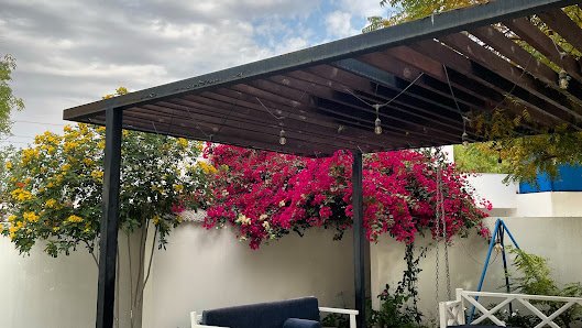 مجلسين الرجال والنساء يتميز بديكوراته الجميلة وأثاثه الراقي والأرضية الرخامية الجميلة والأسقف المزينة بأجمل أنظمة الإضاءة والثريات الكرستالية القاخرة والنوافذ المطلة على الحديقة والمسبح. الحديقة الخارجية تنظم بطريقة جميلة لإقامة كافة الحفلات والمناسبات حيث توزع الكراسي والطاولات الدائرية والمغطاة بأجمل الأغطية والمفارش والربطات الملونة وزينة رائعة للمكان وللطاولات بأجمل باقات الورد مع ترتيب أنيق لأدوات الطعام وفازات الورد والفناجين والكؤوس الزجاجية والمناديل والصحون والإكسسوارات الخاصة التي تزيد من جمال الطاولات.