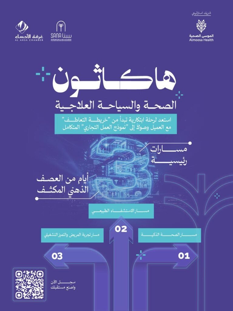 - 🔥🔥الهاكاثون من تنظيم "مركز سنا لتطوير الأعمال" بالشراكة مع "الموسى الصحية" و"غرفة الأحساء".