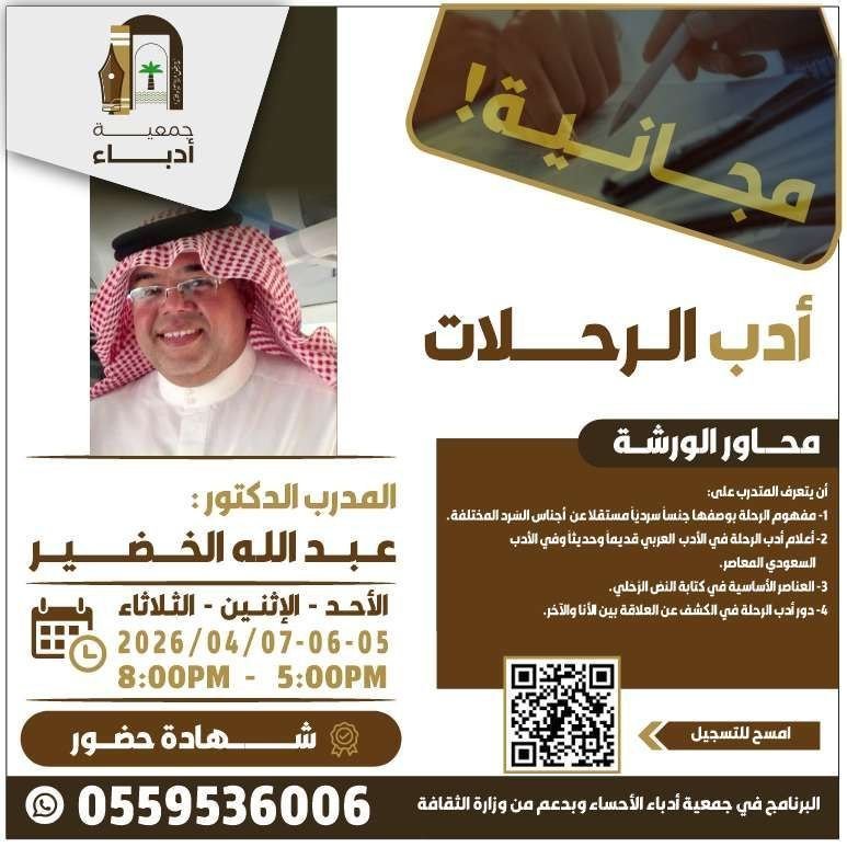 - 🔥🔥التفاصيل: البرنامج يتضمن شهادة حضور ومدعوم من وزارة الثقافة.