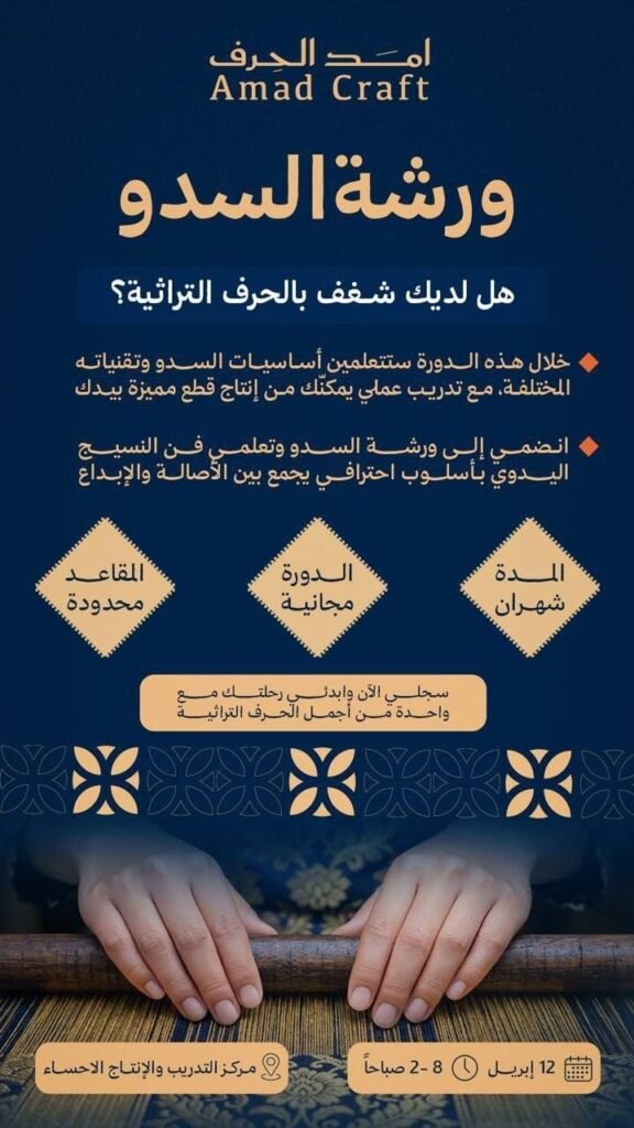 - ✅✅تفاصيل الورشة: دورة عملية لتعلم أساسيات وتقنيات نسيج السدو التقليدي.