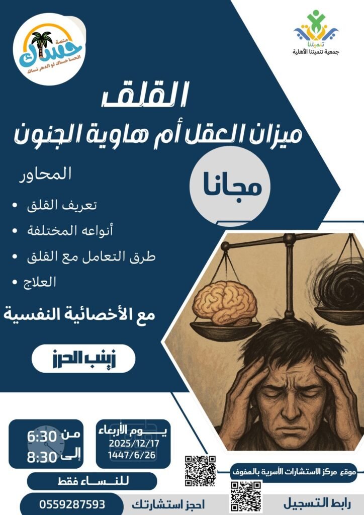 ورشة عمل: القلق، ميزان العقل أم هاوية الجنون