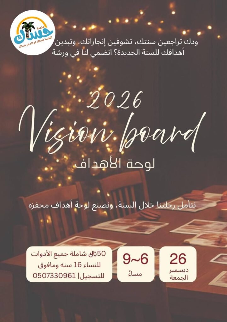 انضمي معنا في ورشة عمل دافئة وفنية نُلهم فيها بعضنا لصناعة لوحة أهداف 2026.