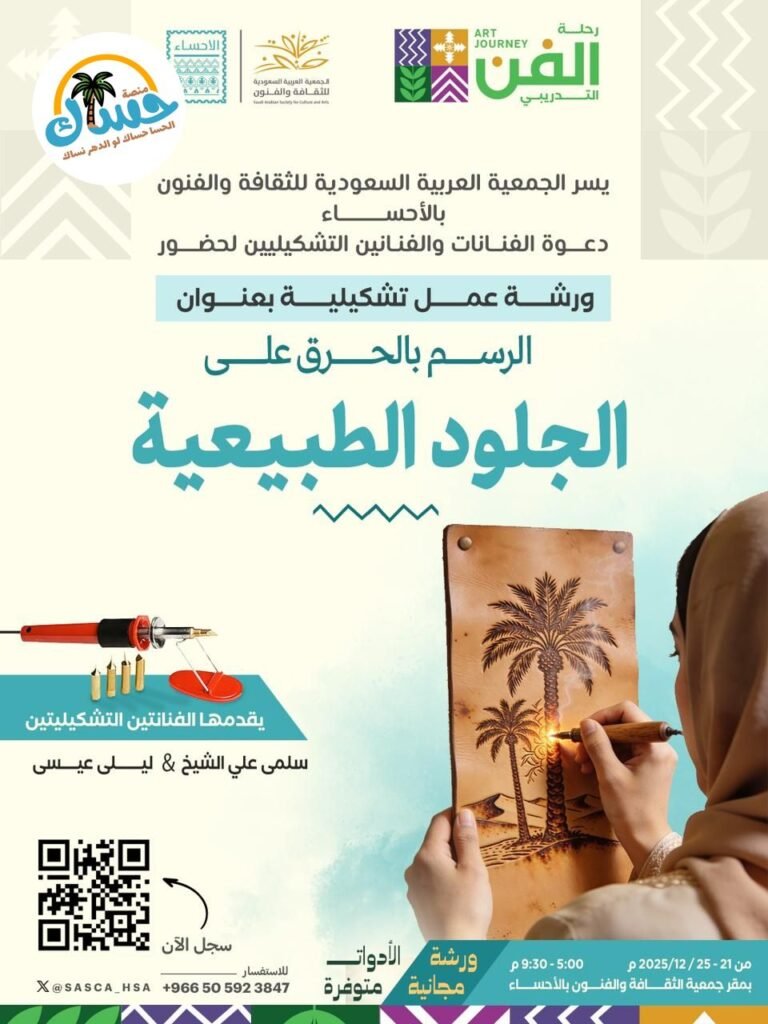 تنظم الجمعية العربية السعودية للثقافة والفنون بالأحساء ورشة عمل فنية مميزة.