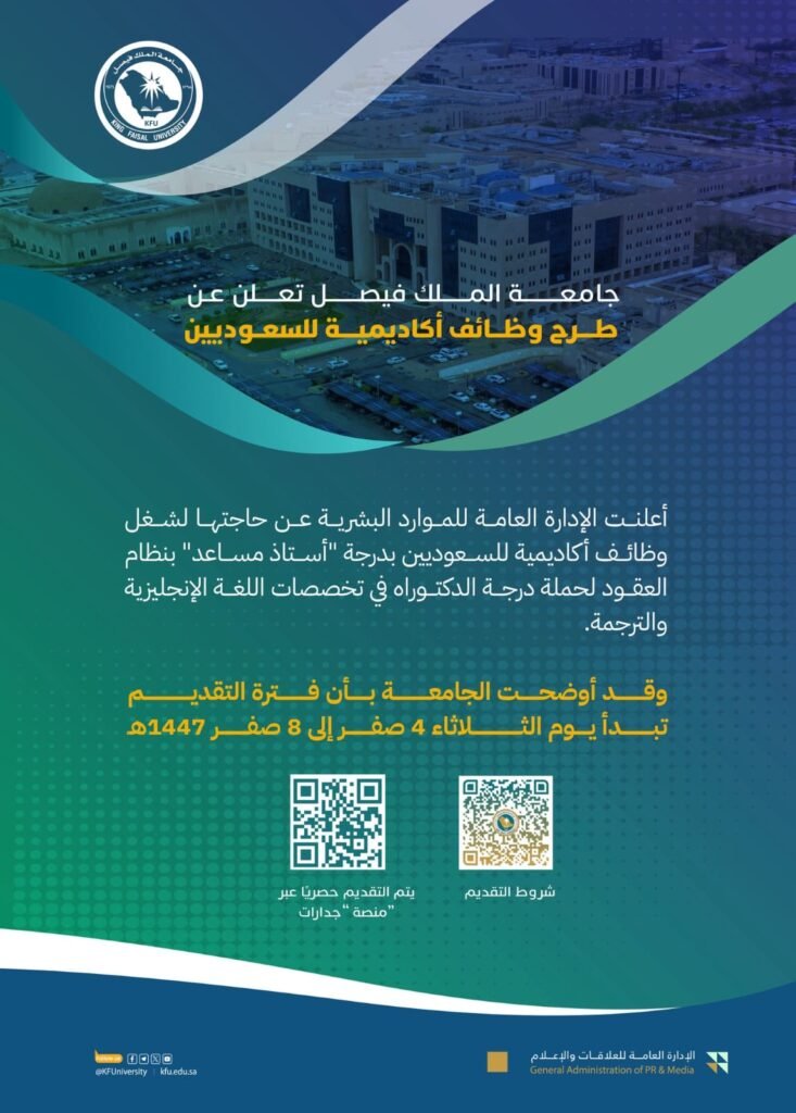 وظائف أكاديمية للسعوديين بجامعة الملك فيصل