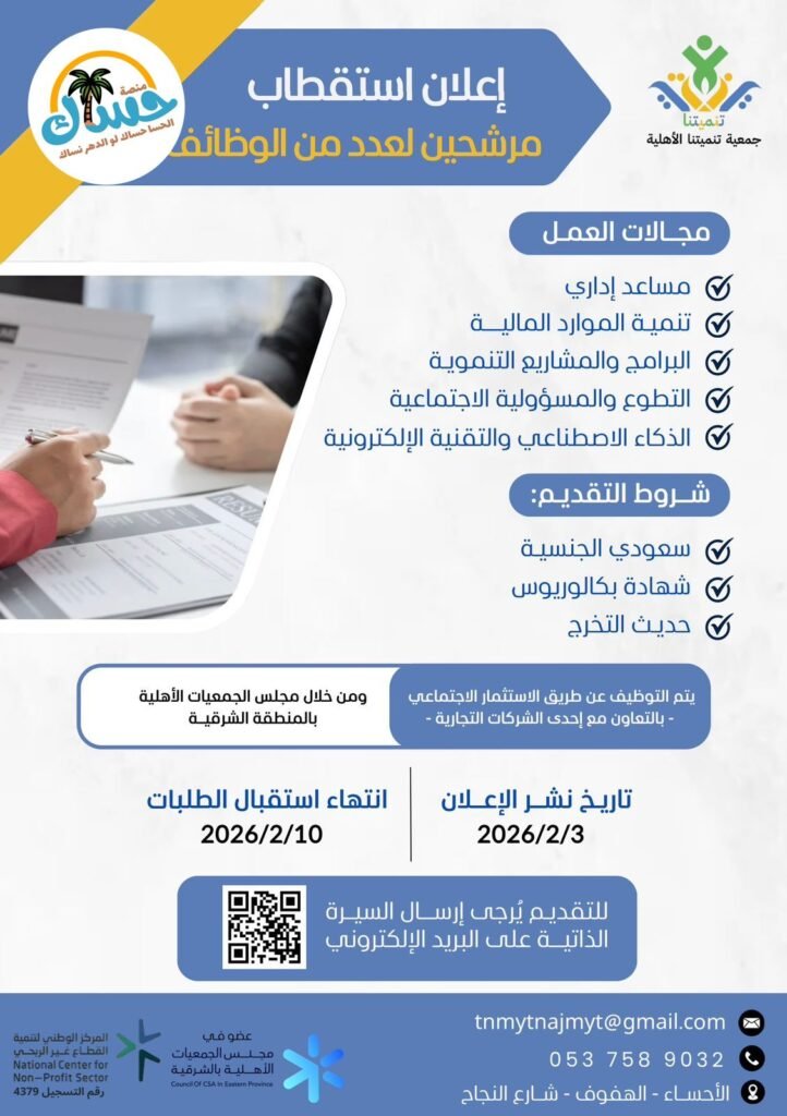 وظائف شاغرة في جمعية تنميتنا الأهلية