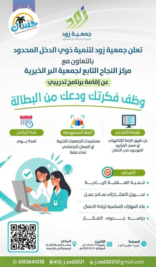المكان: مركز النجاح التابع لجمعية البر بالأحساء.