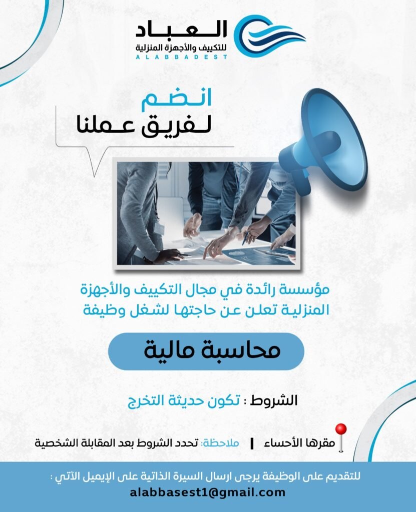 وظيفة محاسب مالي شاغرة لدى العباد للتكييف والأجهزة المنزلية في إعلان الأحساء