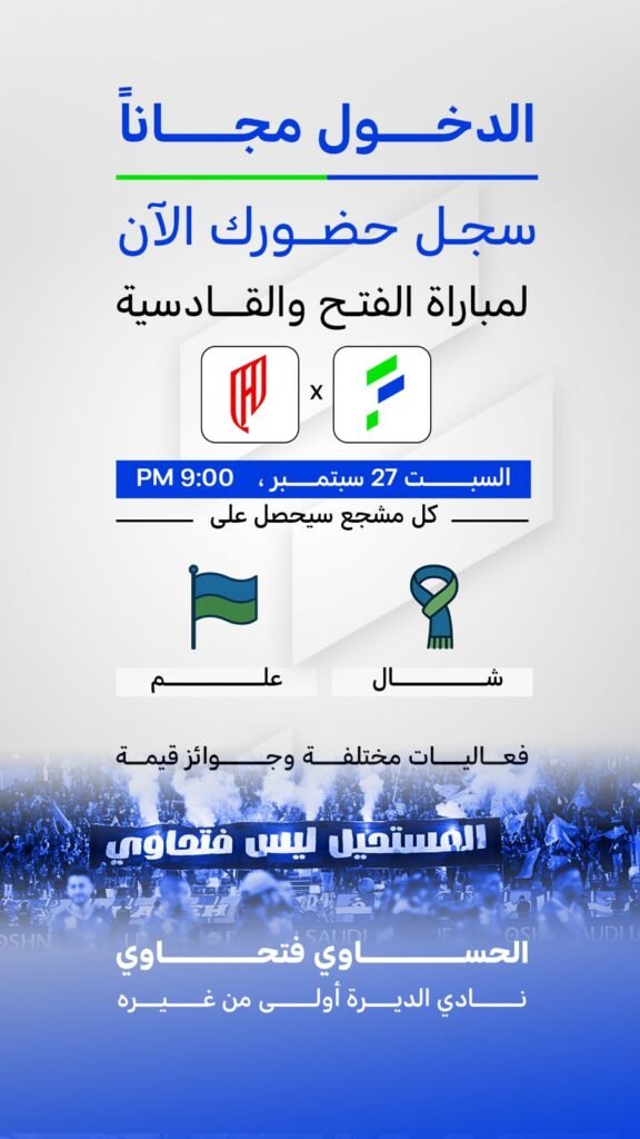 ⚽️🎟️ الفتح vs القادسية – مباراة مجانية
