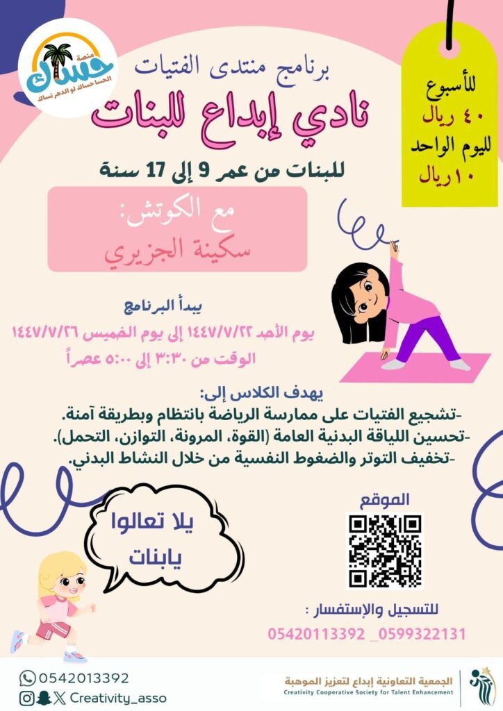 ✨ نادي إبداع للبنات: برنامج لياقة بدنية للفتيات 9-17 عاماً ✨