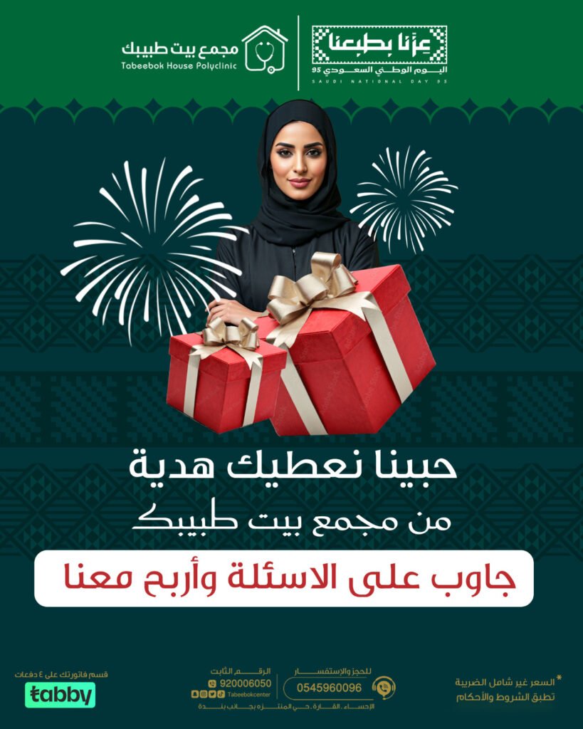 شاركوا في المسابقة الوطنية 💚 واجيبوا على 3 أسئلة صحيحة لفرصة ربح خدمات مجانية من مجمع بيت طبيبك 👨🏻⚕️.