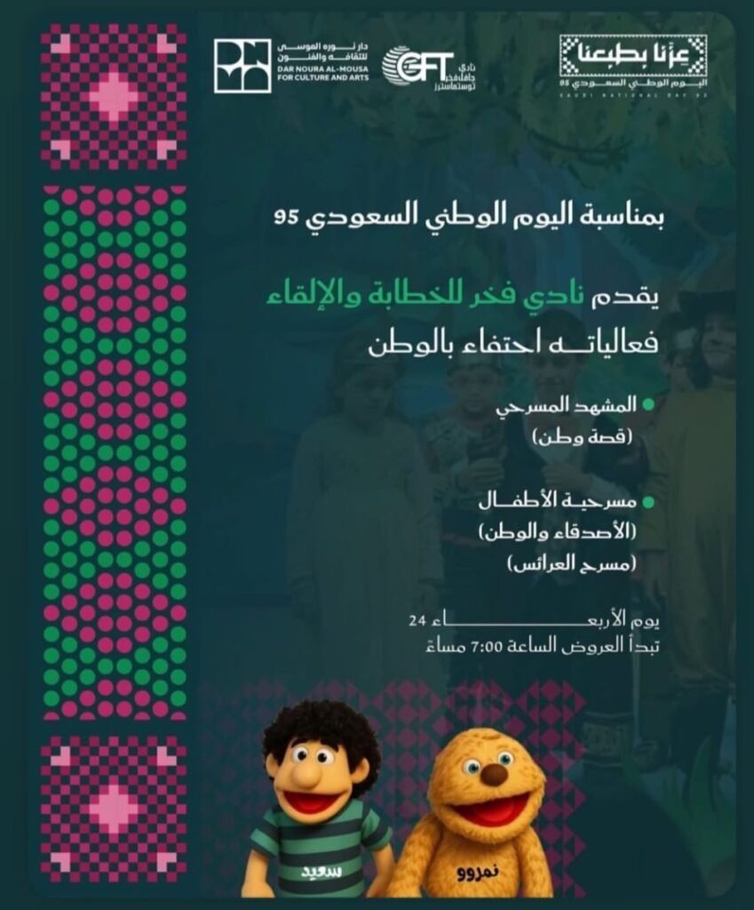 🇸🇦🎭 احتفال اليوم الوطني السعودي 95 – نادي فخر للخطابة والإلقاء
