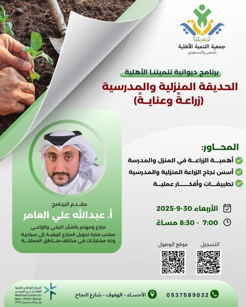 🌿 برنامج ديوانية تنميتنا الأهلية – الحديقة المنزلية والمدرسية