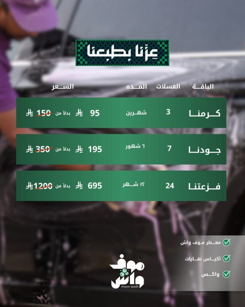 🎉🚗 اليوم الوطني مع موف واش – عروض غسيل داخلي وخارجي