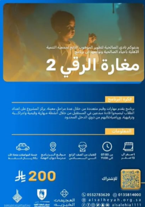 يقدمه نادي الصالحية لتطوير الموهوب – التابع لجمعية التنمية الأهلية بالصالحية