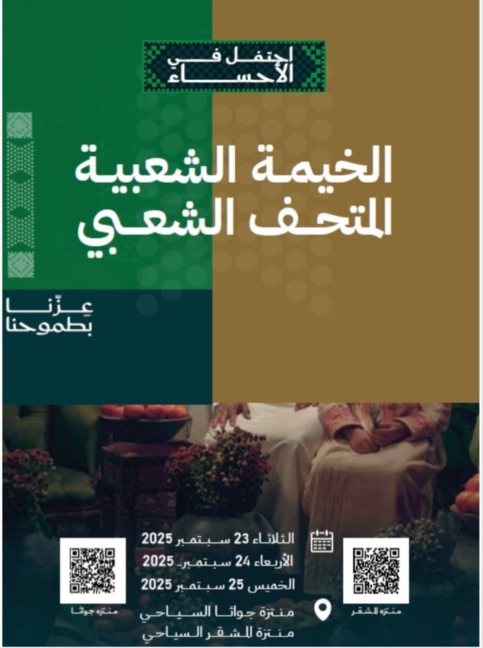 احتفالًا باليوم الوطني السعودي في الأحساء، ندعوكم لحضور الفعالية الوطنية المميزة التي تُقام في أماكن سياحية مميزة بالمدينة.