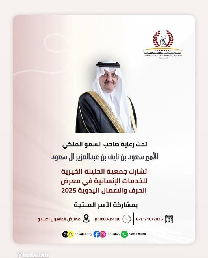 🎪📅 فعالية: معرض الحرف والأعمال اليدوية 2025 – برعاية الأمير سعود بن نايف