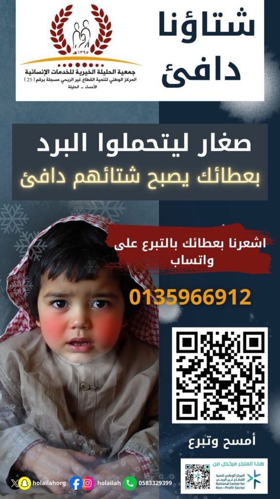 🧣❄️ جمعية الحليلة الخيرية تطلق مشروع “شتاؤنا دافئ”